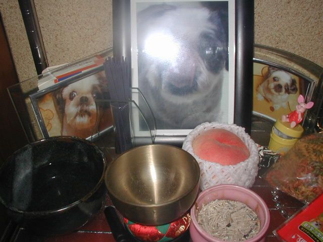 お供え。2代目拓ちゃん狙わない?!うちは置いておけないよお(TT)そこから離れないもん。