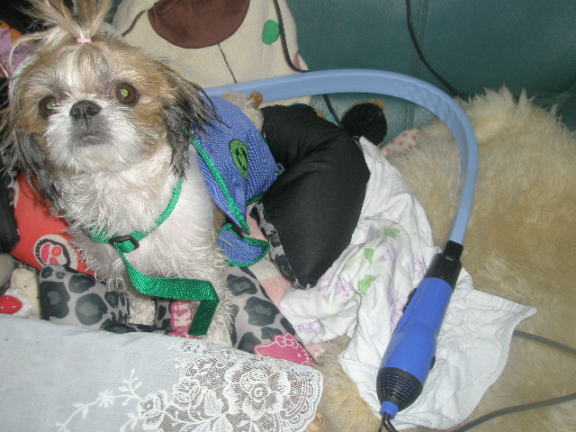 両手が使えて、抱っこで乾かすのね~