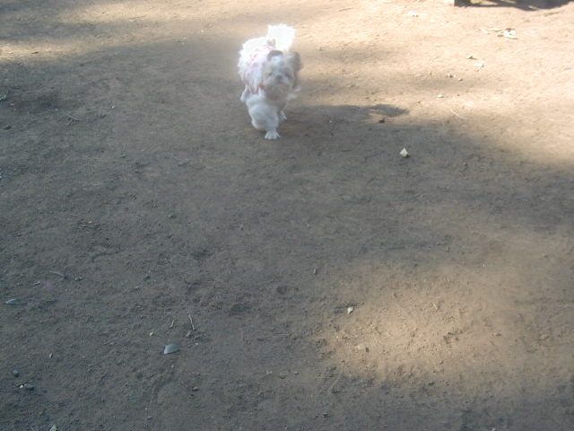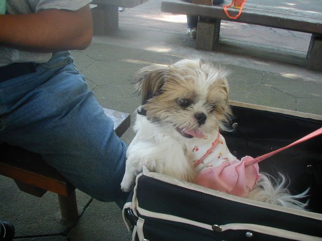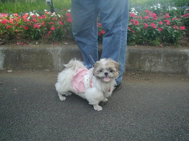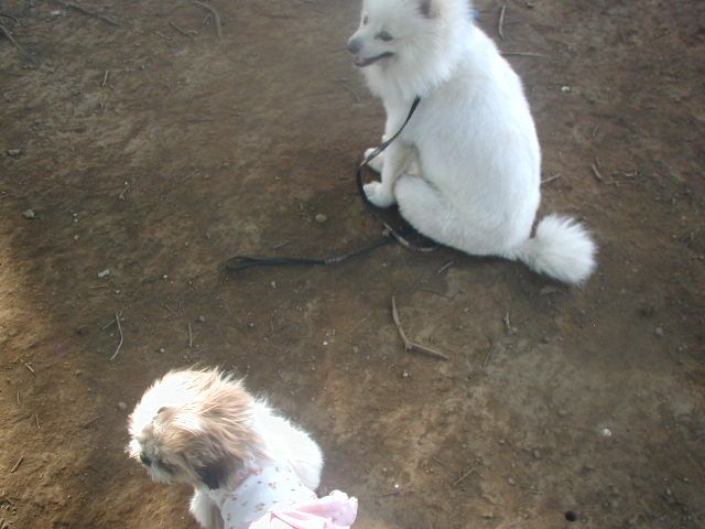 こんなに毛長くないわよね。う~んスピッツ?わかんない!でも拓美ちゃん、お外でも平気ってわかって安心ね。これからどんどん沢山のワンちゃんと遊ぶようになるかもね。