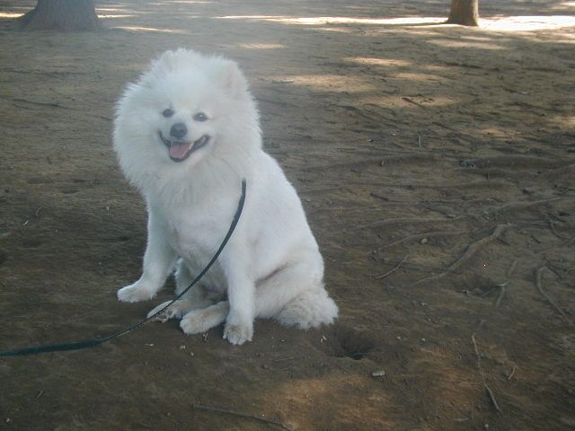 白いワンコ、ポメかしらね~。