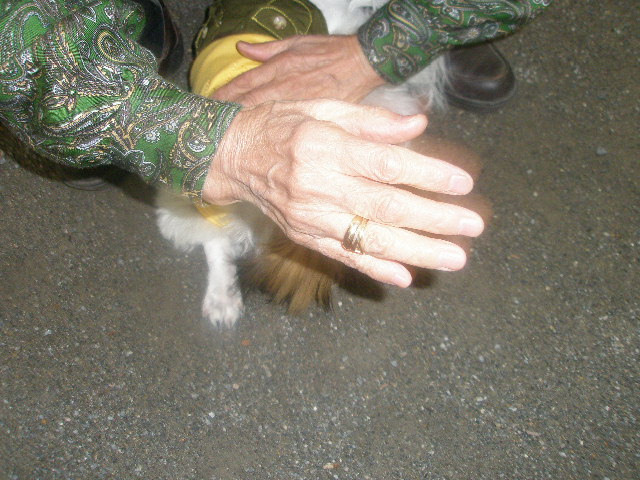ヨーキーちゃんの飼い主さんのひざの上にぽんっと。