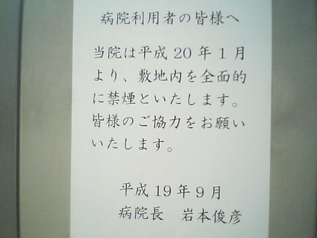 >以前市民病院が新しくなって、喫煙室も立派になって喜んでいたら、今はもう無くなった(汗)せっかく作ったのに~なんて思ったりしました。