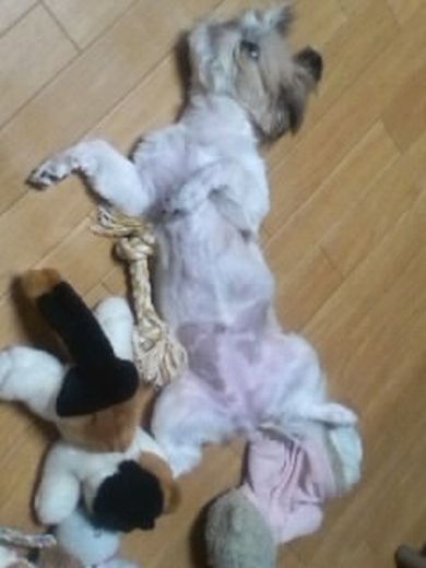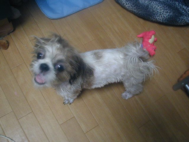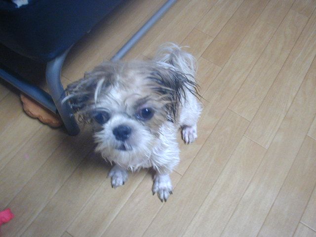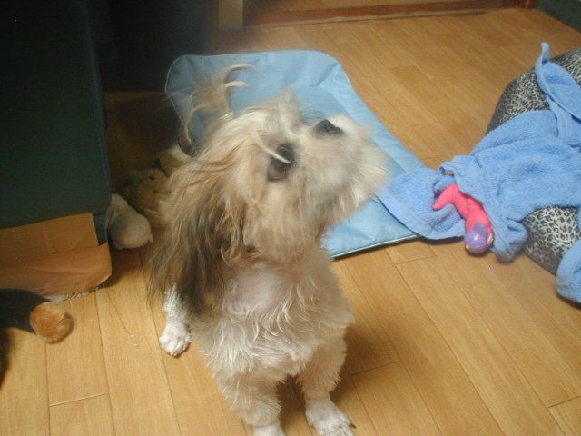 お風呂タイムの後の、髪の毛乾かすのが大変なんですよね!ドライヤーは音が大きいから嫌がるし、タオルだと毛を引っ張られるから嫌がるし・・・まぁ~今の時期は、すぐに乾くからいいけどね(^。^)b