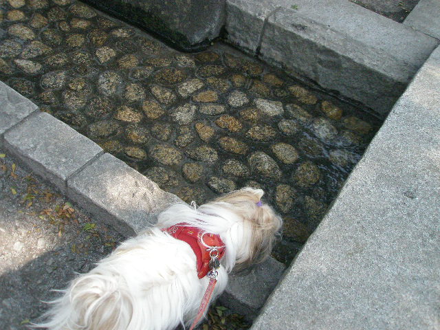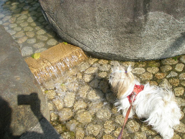 >拓ちゃん、念願のお散歩できてうれしいね。水浴び?もできたし~。