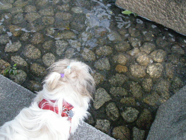 拓ちゃん、念願のお散歩できてうれしいね。水浴び?もできたし~。