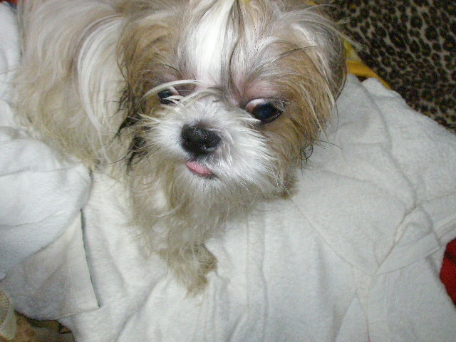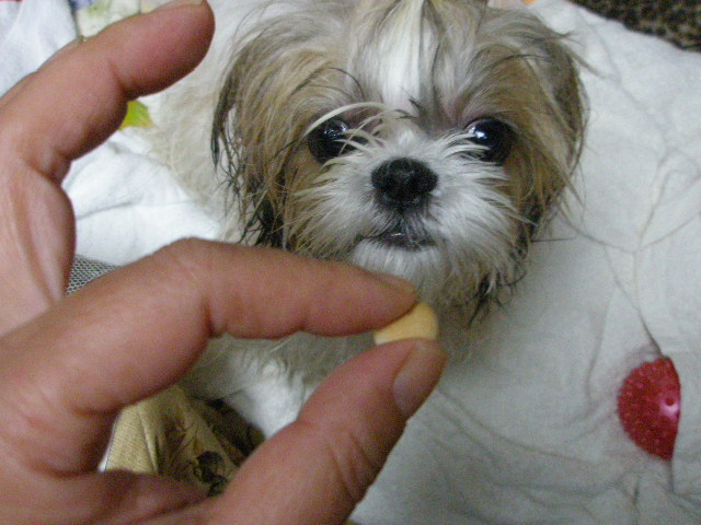 >たとえオヤツを貰ってもブラッシングとドライヤーの2段攻撃は苦手~~(><)