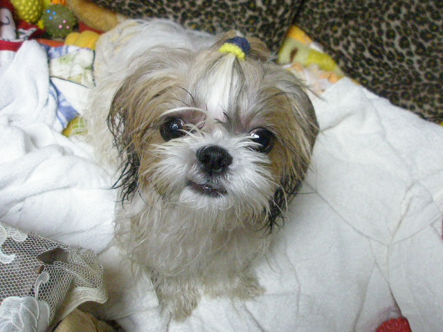 たとえオヤツを貰ってもブラッシングとドライヤーの2段攻撃は苦手~~(><)
