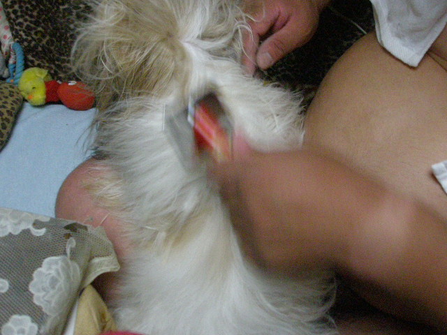 でもパパさんとママさん、ふたりがかりでお手入れしてもらってうらやましいけど拓美ちゃんにとっては拷問だったのね(ToT)