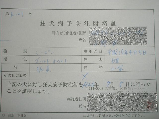 狂犬病のブスッ! ☆ ―⊂|コヘ(^-^ ) お注射っ!。。。