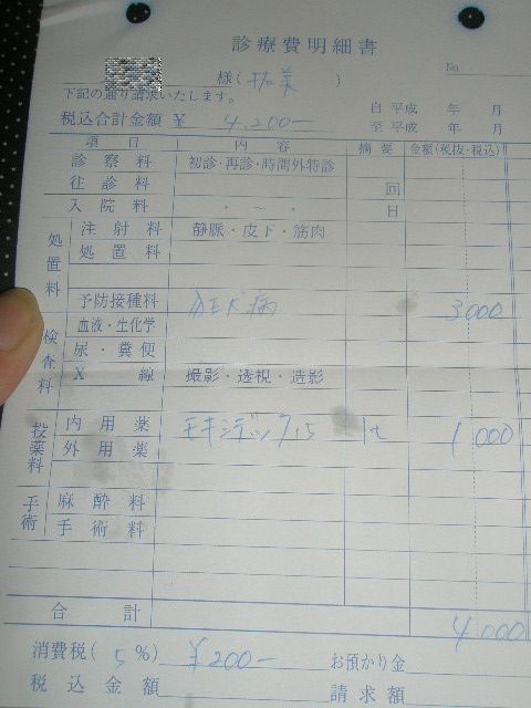 >注射とフィラリアの代金のみでもずいぶんお安いですね。