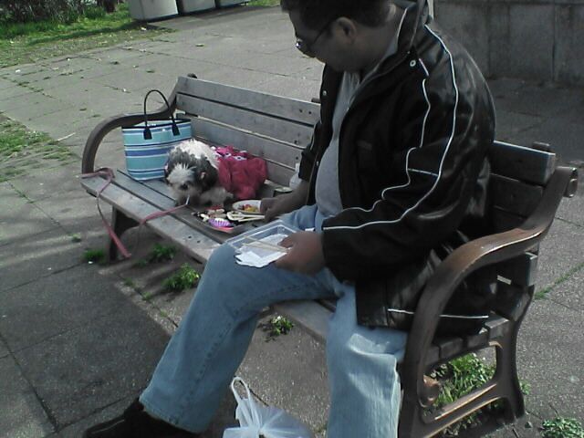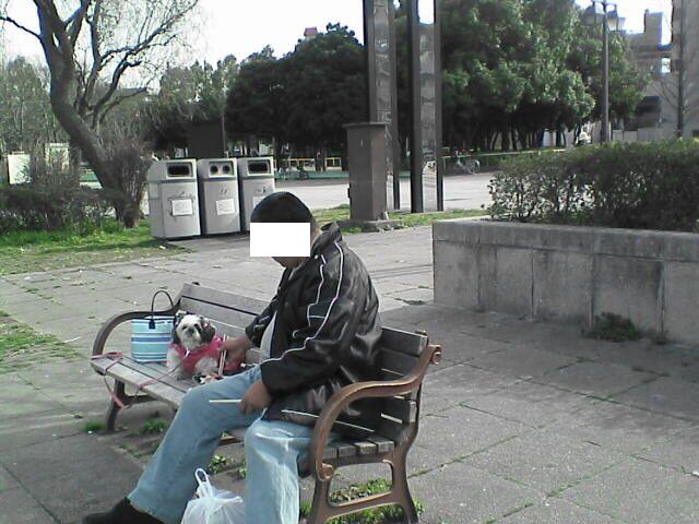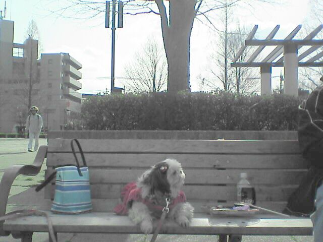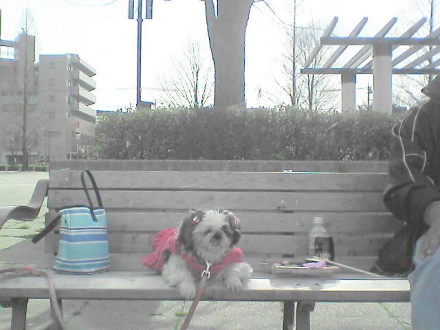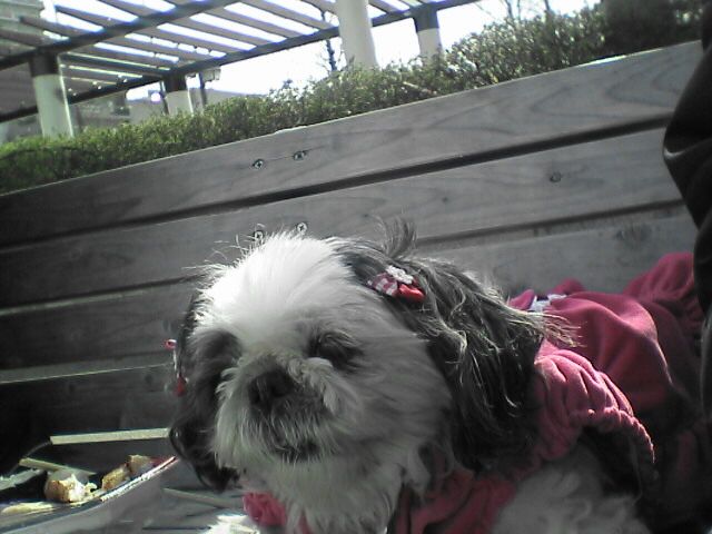 お散歩より、ベンチで日向ぼっこの方がお気に入りなのね。