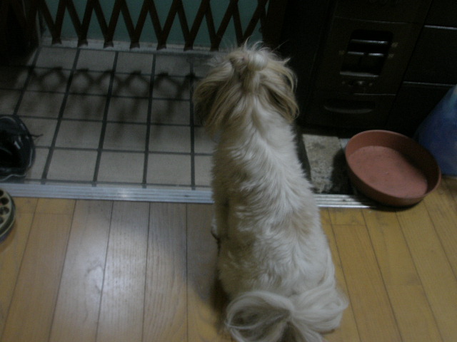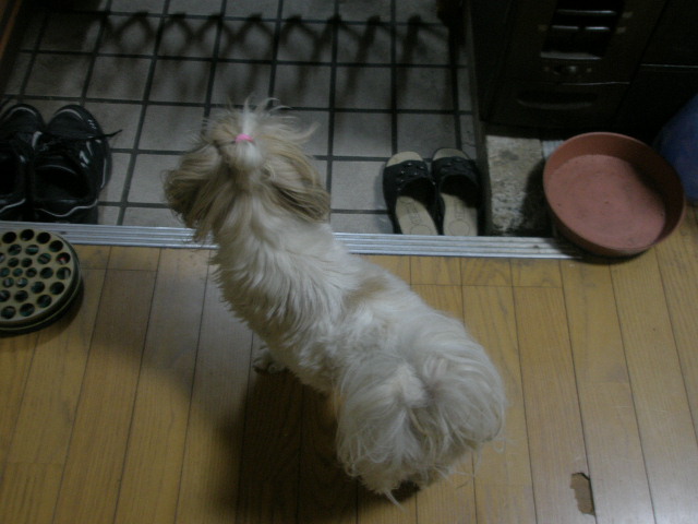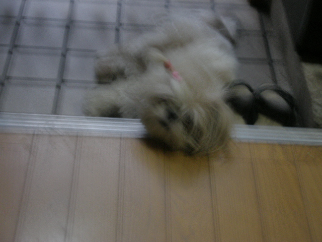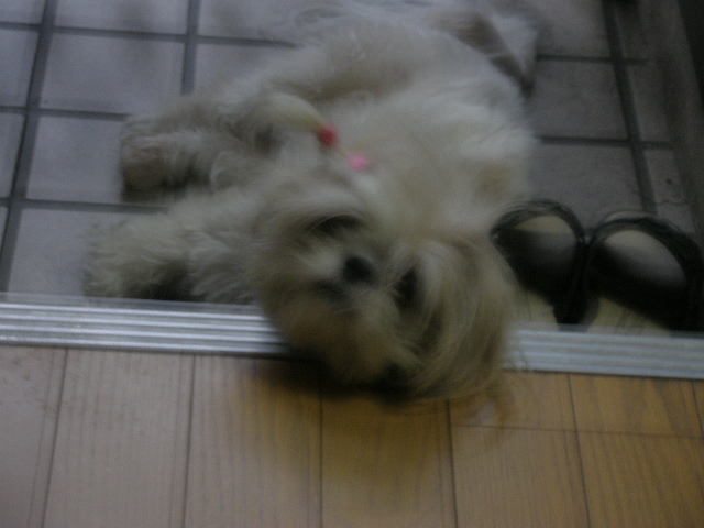 >拓ちゃん、玄関は冷たくてひんやり気持ちいいし大好きなパパが来るし最高にお気に入りの場所ですね~