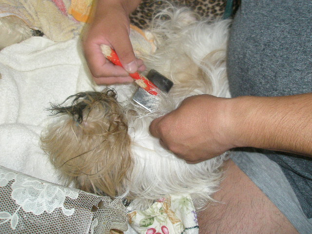 >パパさんならおとなしくしているのね~(笑)これからは拓美ちゃんのお手入れハパパ専門でやってもらいましょ(笑)