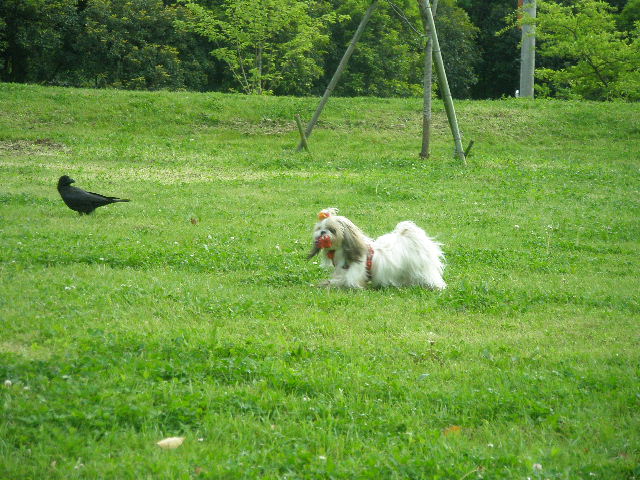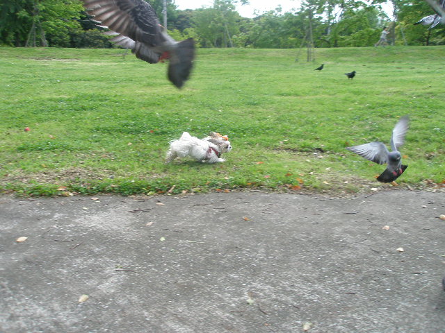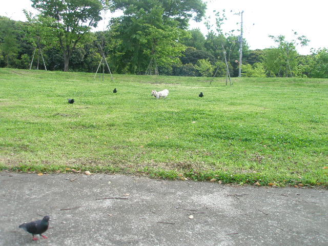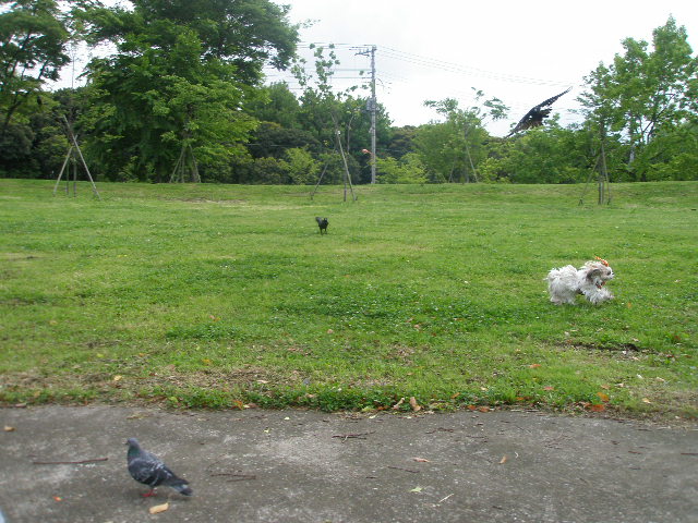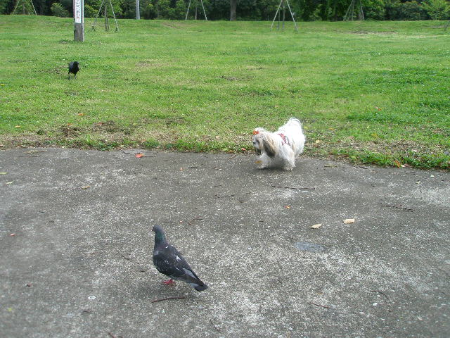 >鳩さんとカラスさんに遊んでもらって良かったでチュね=*^-^*=にこっ♪
