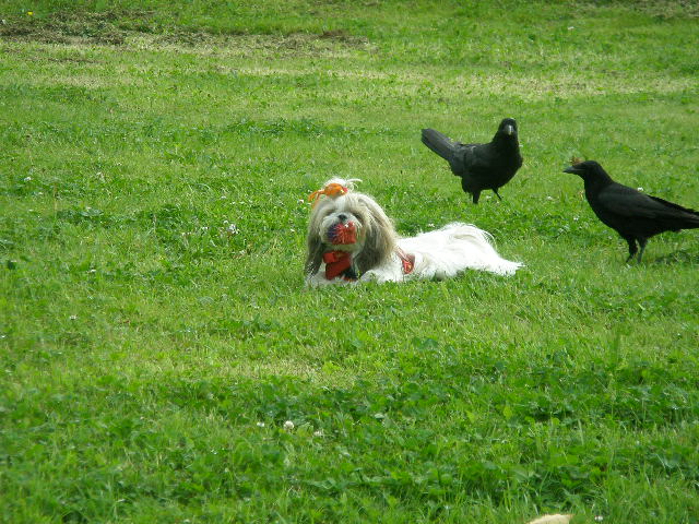 鳩さんとカラスさんに遊んでもらって良かったでチュね=*^-^*=にこっ♪