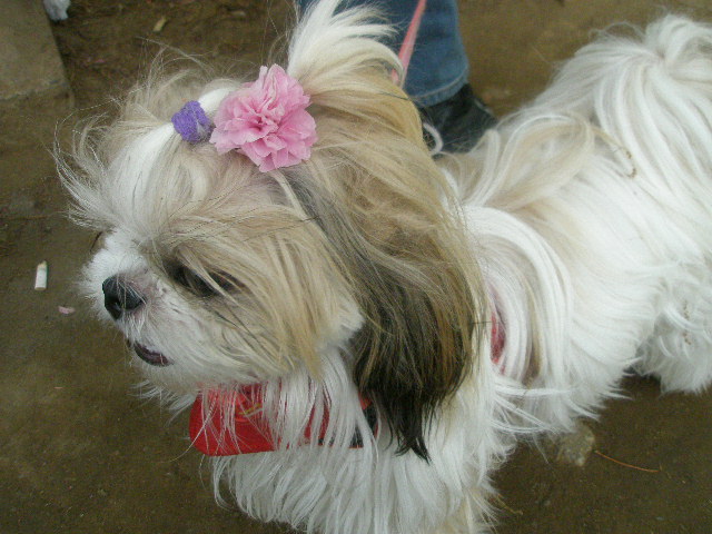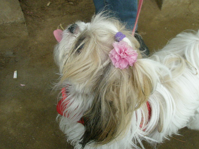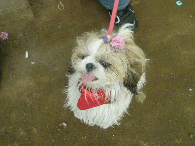 拓美ちゃん、ママがお花のボンボンつけてくれたね♪ とっても似合ってる!