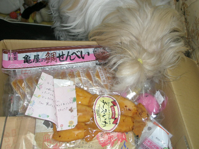 えりさんから、嬉しいプレゼントが届きましたね。早速食卓に並んで美味しそうです。拓美ちゃんもたくさんのおやつにおもちゃ、良かったわね~。姉妹や両親にいっぱい長生きして欲しいわね。