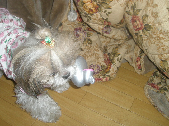 飛行機のオモチャで釣っています。。( ̄o ̄;)ボソッ
