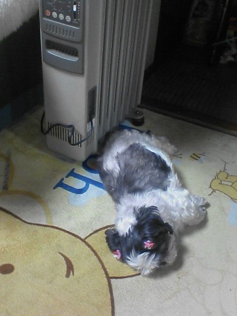 珍しくヒーターにくっついて寝ていた拓美・・・