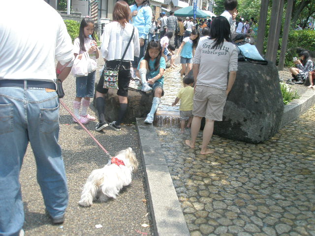 >パパの側でペッタンしてる拓美ちゃん、いい子だね♪ 道行く人のアイドルだね♥