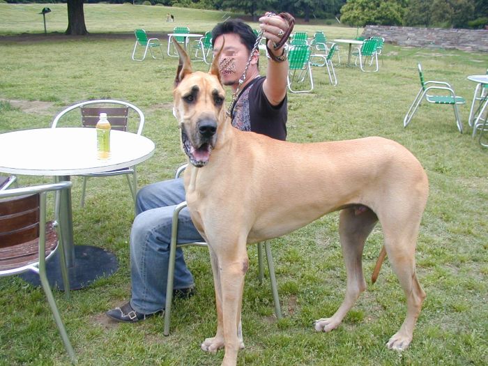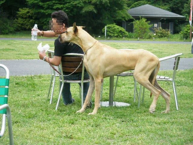 >拓美ちゃんは大きなわんちゃんは恐がりませんか。すずは大きいわんちゃんは苦手です。(尾を下げ、後ずさりなの)