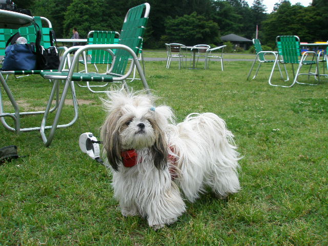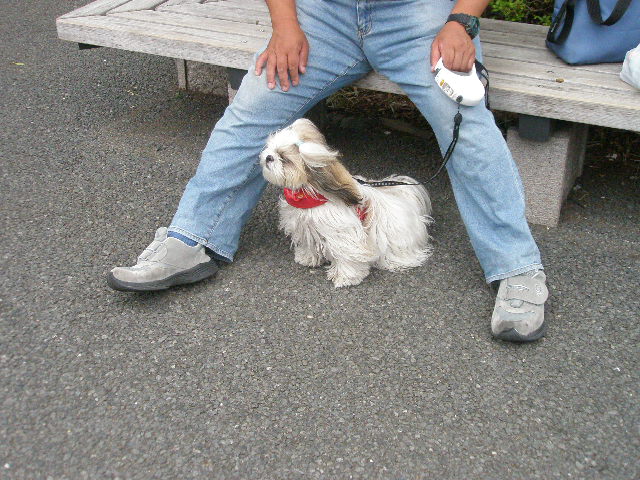 拓美ちゃんは大きなわんちゃんは恐がりませんか。すずは大きいわんちゃんは苦手です。(尾を下げ、後ずさりなの)