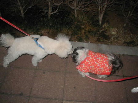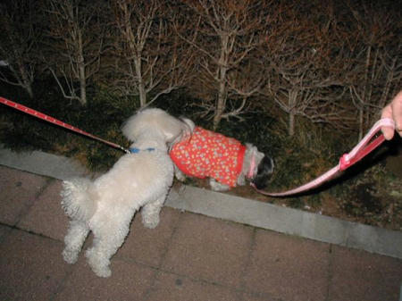 >夜のお散歩も仲間がいますの。