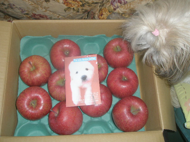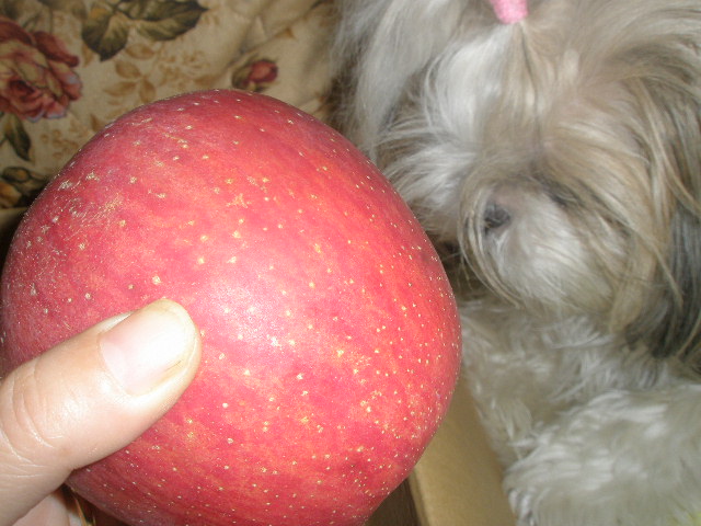 >このりんごうまそうだなぁ、拓美チャンも食べますか、テトは大好きです。