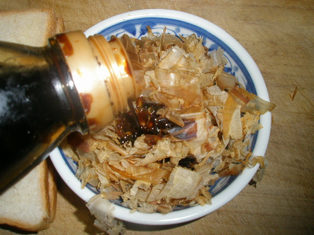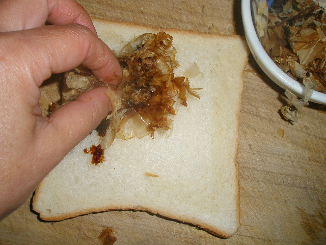 >拓ちゃんの鰹節ね・・ママのパンに!