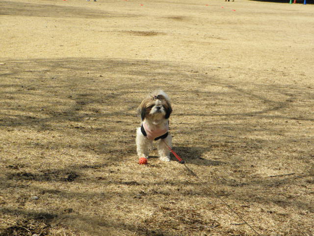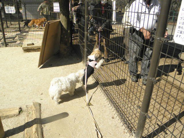 >広いドックランで・・って拓美ちゃん逃げてる?よっぽどこのマルチーズちゃんは拓美ちゃんが気に入ったのね~お友達になれたのかな?