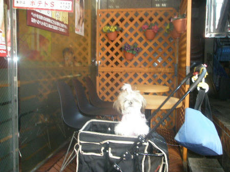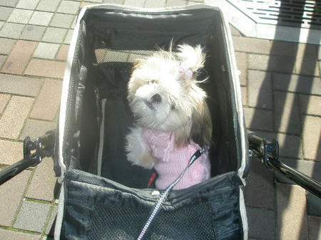 チビをカートに押し込んで