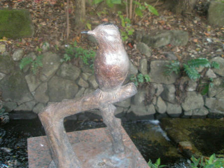 鳥のブロンズ像や