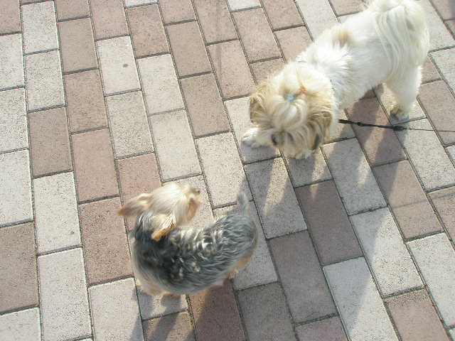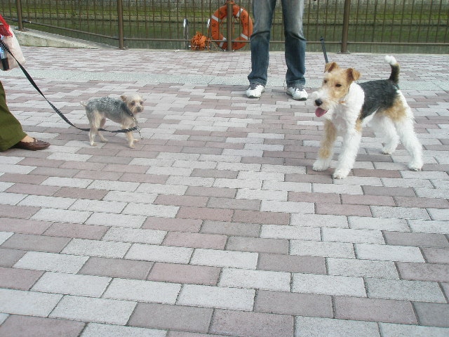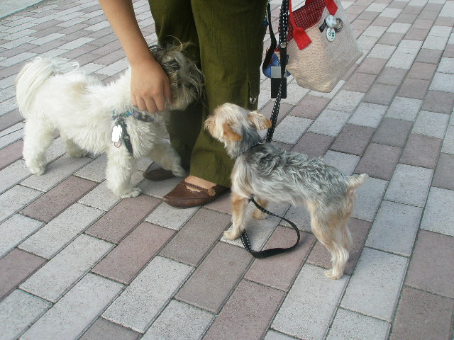 >ヨーキーちゃんと並ぶと大きく見えるわ。