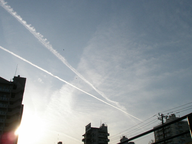 >飛行機雲の形がいつまでもきれいに残ってるときって雨が近いんじゃなかったっけ?