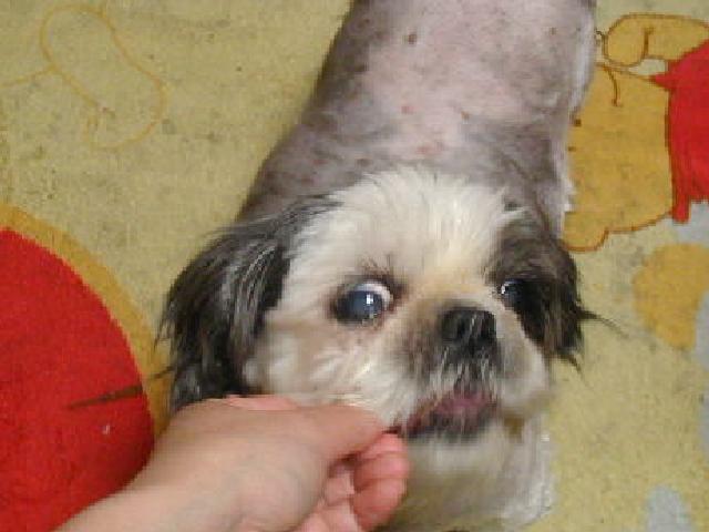>まだ凹んでる?拓パパさん、びっくりしてない?これもお薬付けるためと分かって安心しましたよ~!まだサマーカットには早すぎるって思ったから(汗)アレルギーで毛が抜けると生えるにも時間かかるけど、そうじゃないから早く生えるのね。それまでは洋服着てればいいか!散歩も無いしね。
