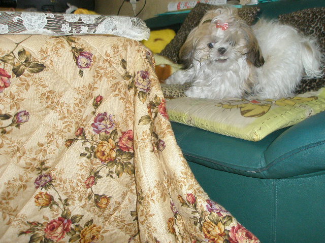 初めて見るコタツに興味深々のちび、。。。