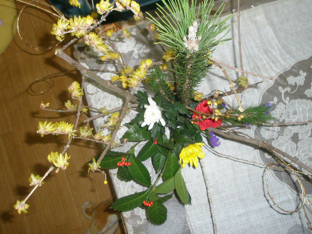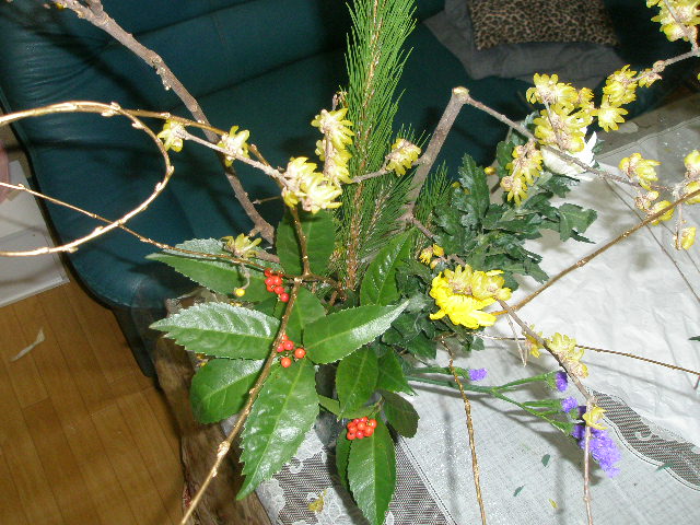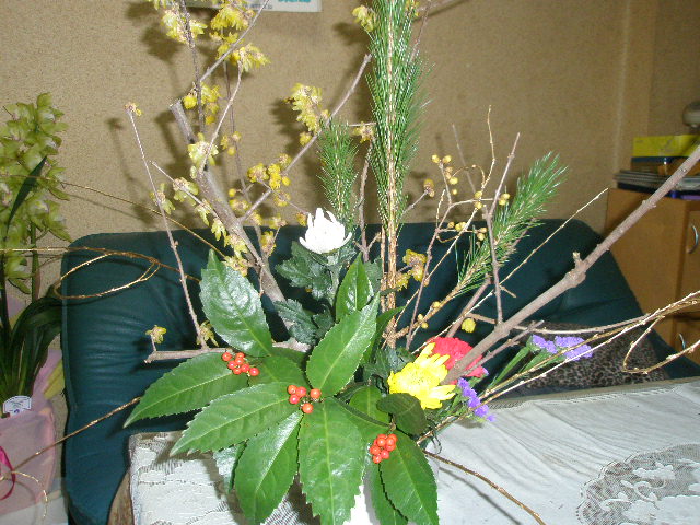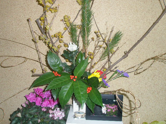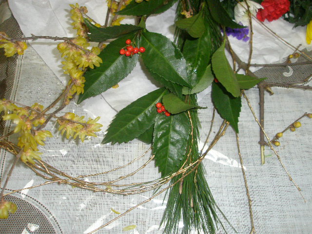 松に万両。。金柳。そして