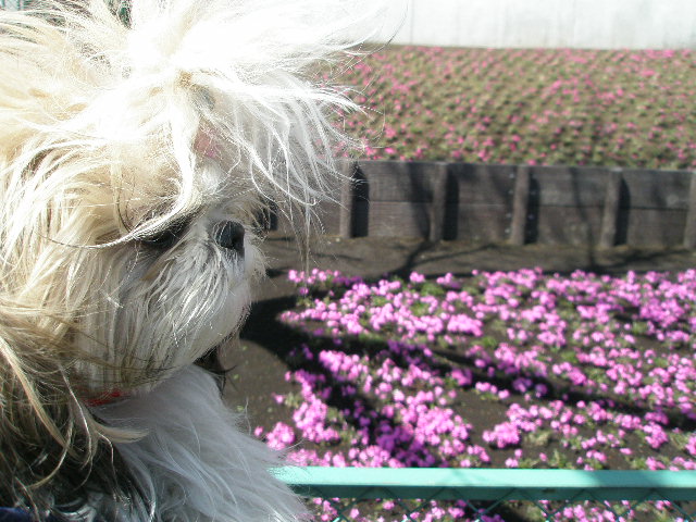 桜草の絨毯も色鮮やかだわ。ここを散歩しているのね。拓美ちゃんに会いに行きたいわ。どこでもドアー無いかな?