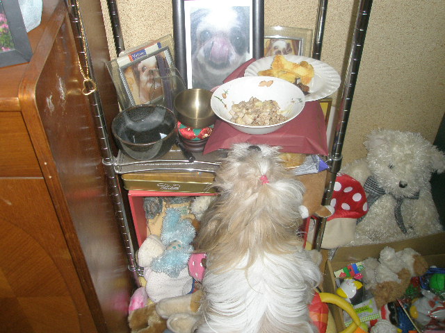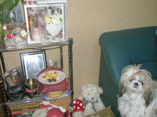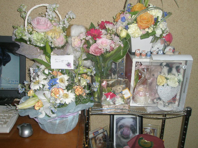 >初代拓美ちゃんは、みんなから愛されていたのね。こうしてお花に囲まれて、美味しいご馳走作ってもらって、きっと笑顔で