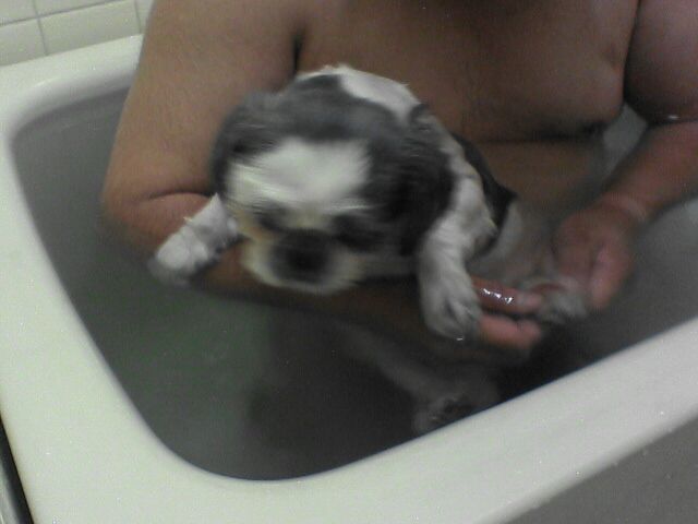 池に入ったしね、パパさん風呂ね。