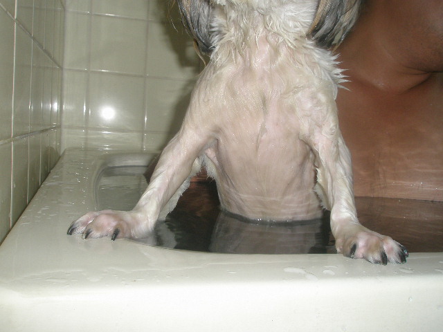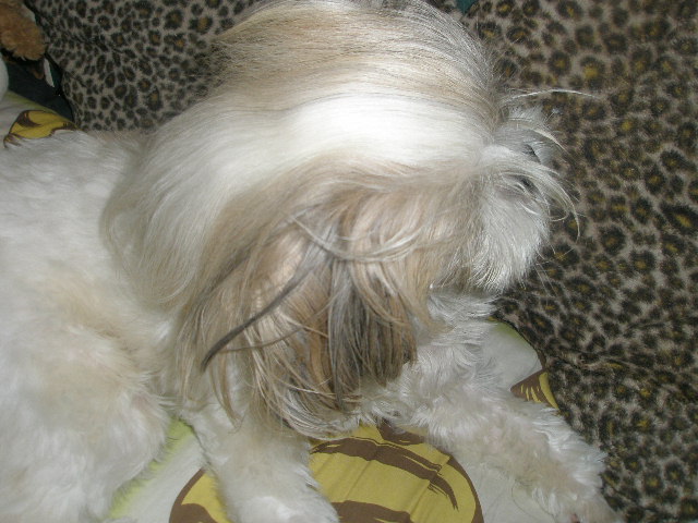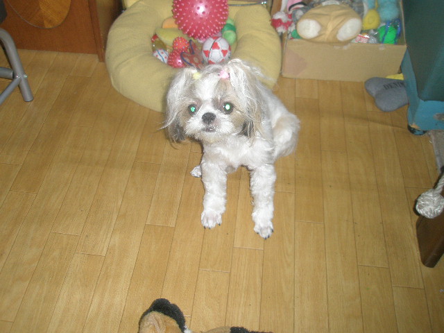 狆は頭のてっぺんの毛は伸びないからうらやましい~。