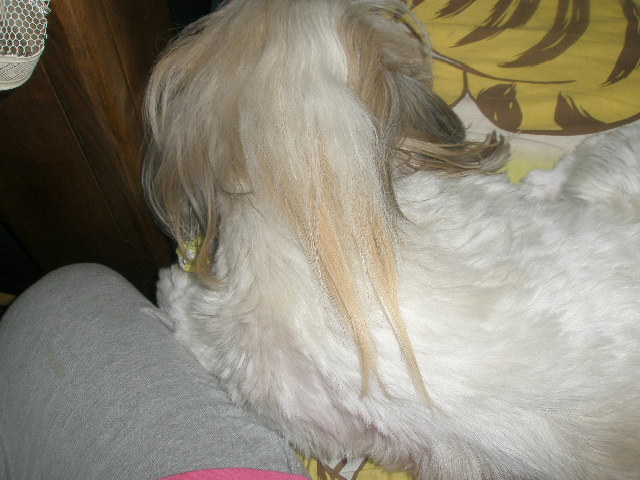 >狆は頭のてっぺんの毛は伸びないからうらやましい~。