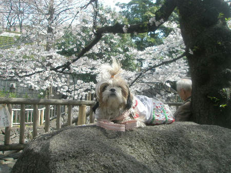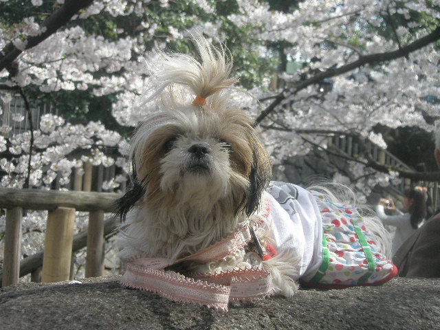 ちびちゃん、桜とのツーショット(^-^)//""ぱちぱち