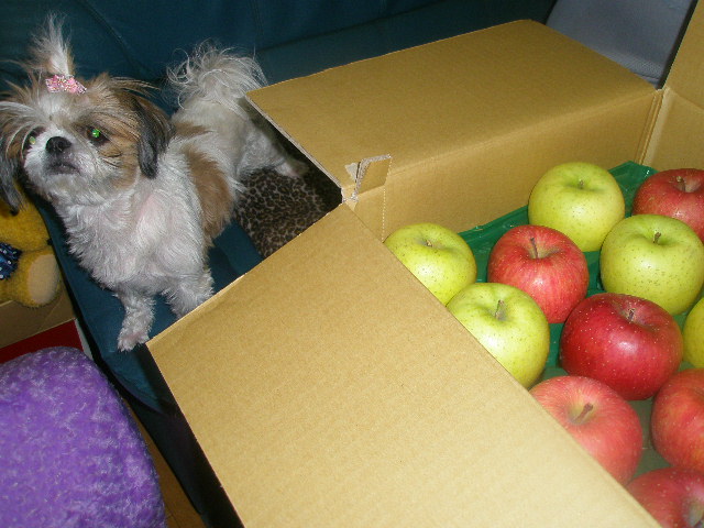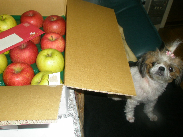 おやっ?箱の影からのぞくりんご娘は誰ちゃんですか?(笑)
