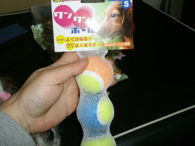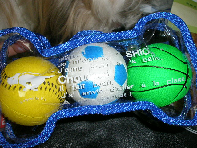 たくさんのボールにオヤツ肉球スタンプオリボン