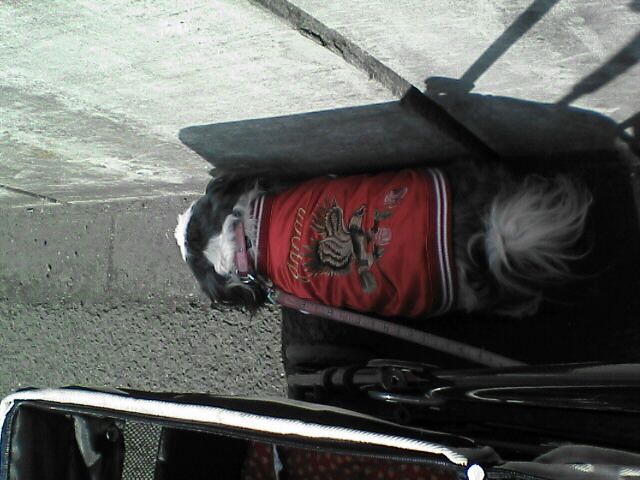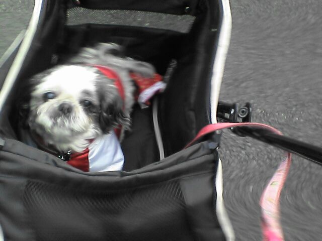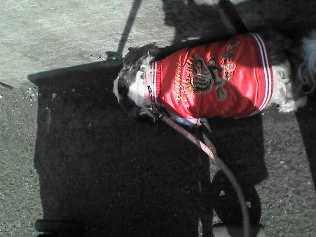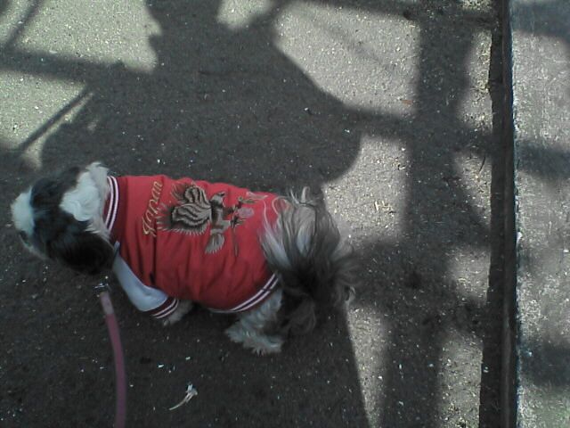 日差しが眩しいのか・・陰を歩く拓美です・・