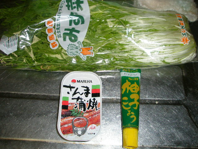 材料は水菜さんま缶柚子コショウ・・