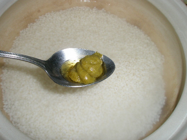 普通に水加減したコメに柚子コショウ小匙1杯混ぜ