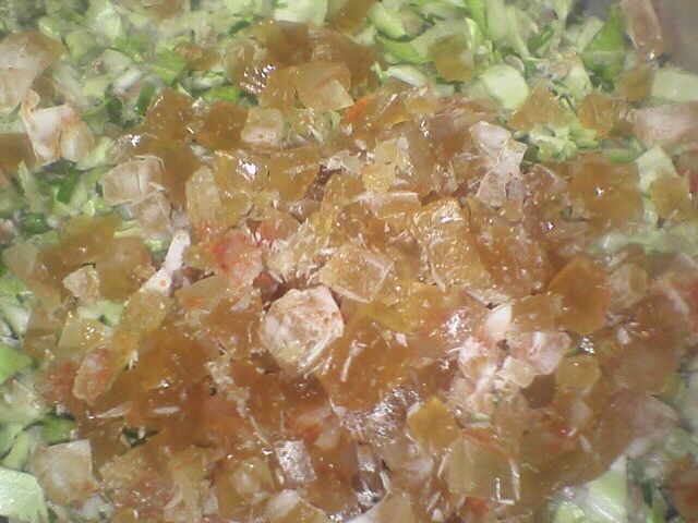 キャベツのみじんきり。小柱。干しエビ、煮こごり♪
