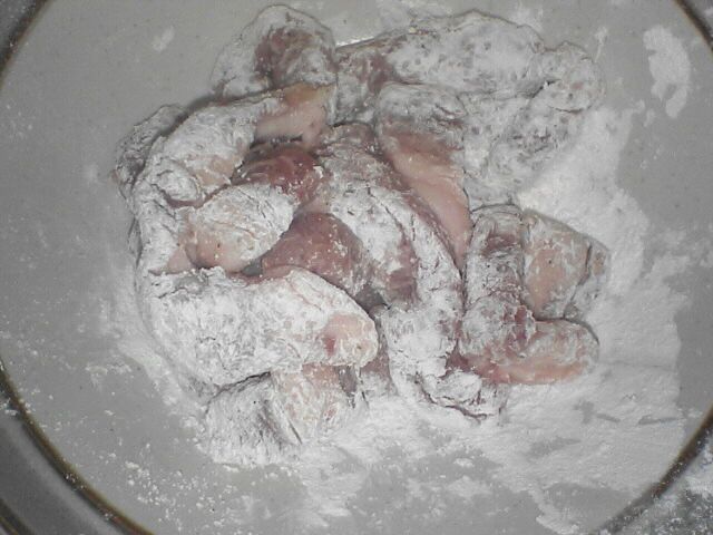 豚肉を食べやすい大きさに切り、塩・コショウで下味をつけ、小麦粉を少しまぶす。